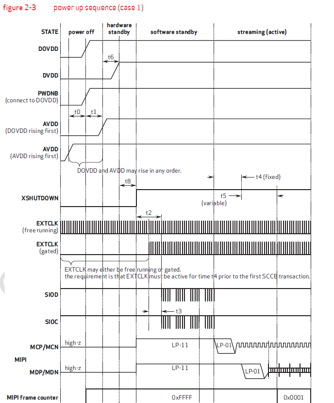 需要根据Sensor的Spec安排上电时序,例如: