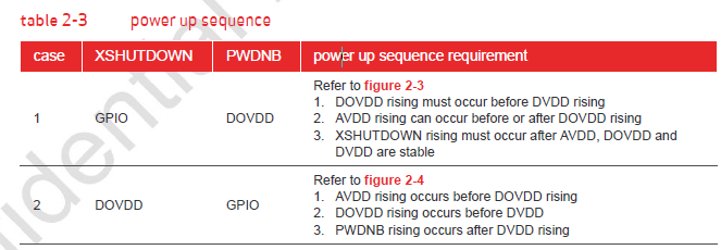 Whether or not XSHUTDOWN is controlled by GPIO, the XSHUTDOWN rising cannot occur before AVDD or DOVDD.