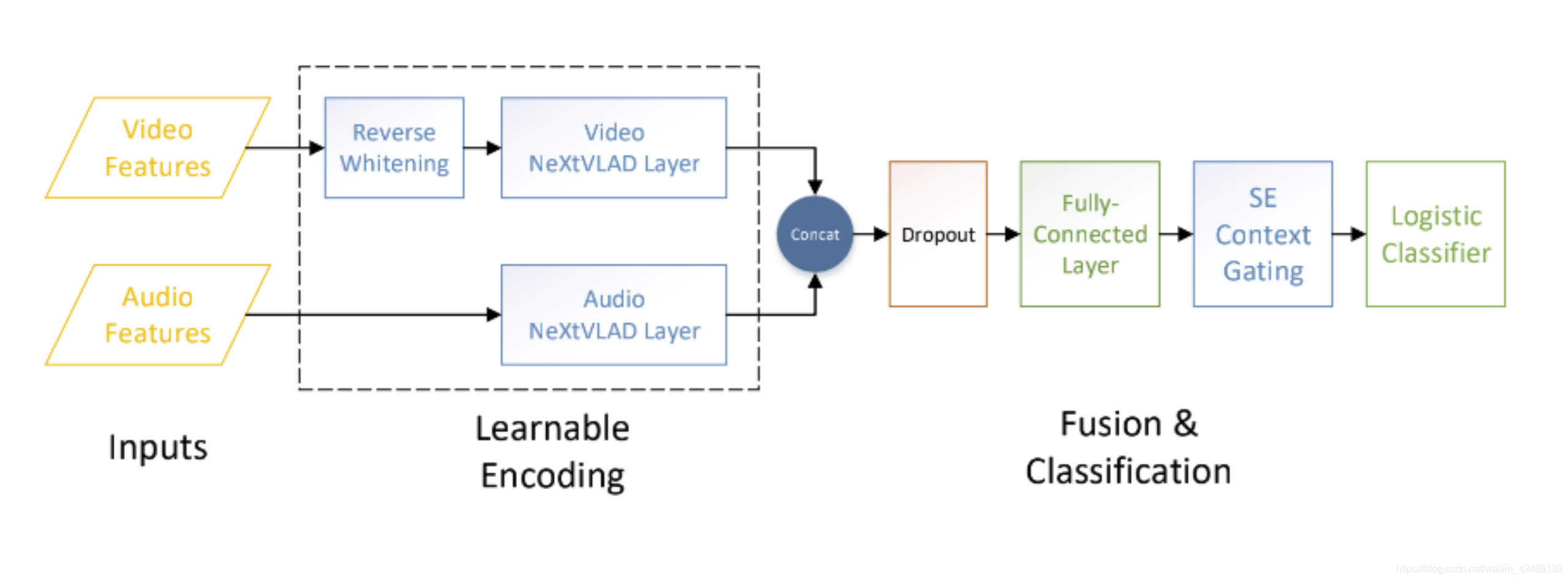 NextVLAD: 第二届Youtube-8M竞赛第三名,效果最优单模型,参数量<80M, GAP: 0.87。 NextVLAD尽管最终成绩是第三名,但是其最终模型只用了3个NeXtVLAD进行ensemble,单模型就能达到很好的效果,更适合应用到实际的项目中。