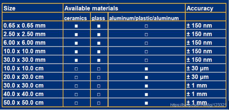 根据自己需求的不同,可以购买不同材质的标定板,目前市面上主流的标定板材质及其优缺点如下: