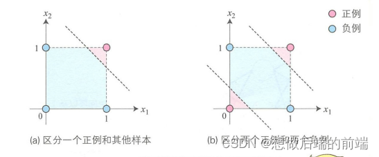 使用误差修正学习,我们可以自动获取参数,这是感知器引发的一场巨大变革。但是,感知器训练只能解决如下(a)图所示的线性可分问题,不能解决如下(b)图所示的线性不可分问题。为了解决线性不可分问题,我们需要使用多层感知器。