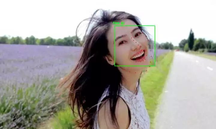 可以看到脸部区域被绿色的长方形框起来了,脸上的特征(鼻子,眼睛等)被红色点点标识出来了。