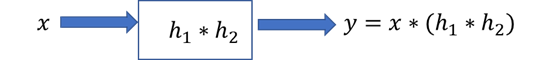 由结合律可知: y = x ∗ ( h 1 ∗ h 2 ) y = x*(h_1*h_2) y=x∗(h1∗h2),因此,系统又相当于 x x x 输入进一个脉冲响应为 h 1 ∗ h 2 h_1*h_2 h1∗h2 的系统