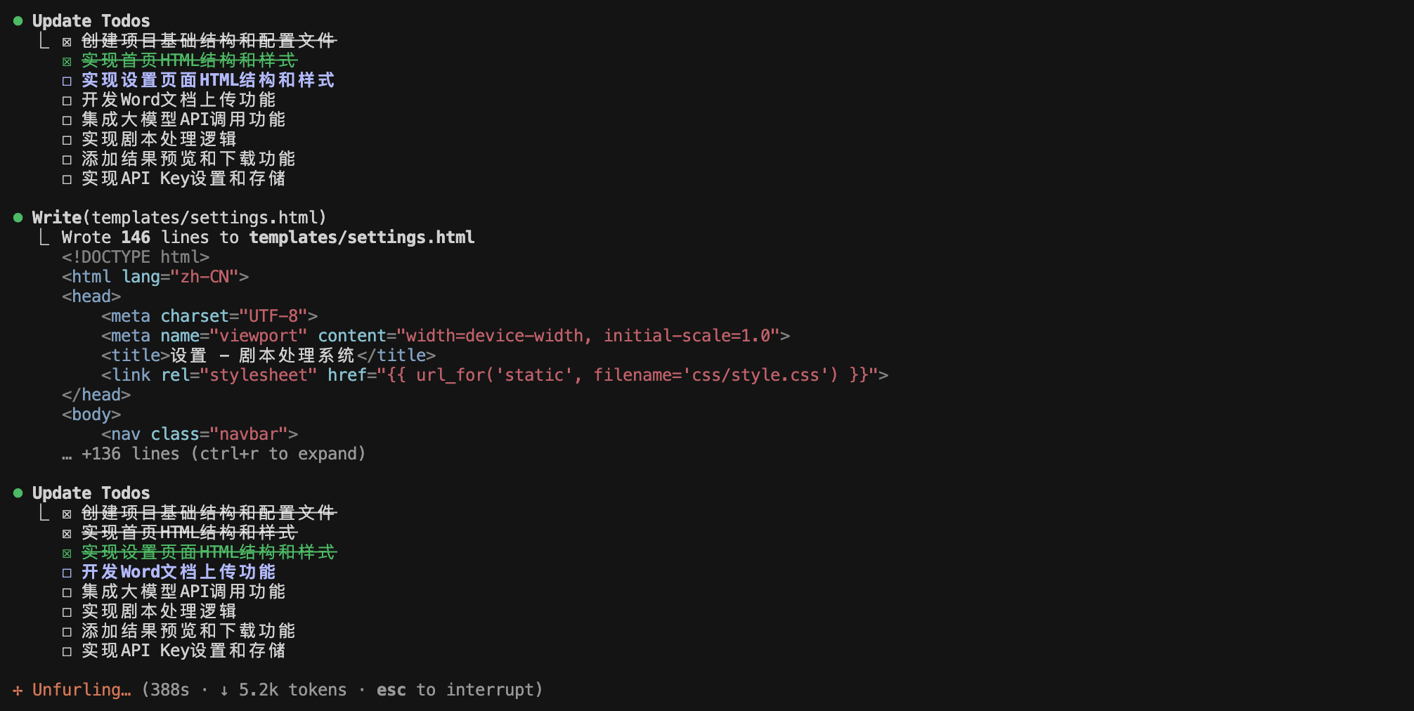 可以看到执行过程中GLM-4.5还会自己列待办事项,一条一条的去完成。