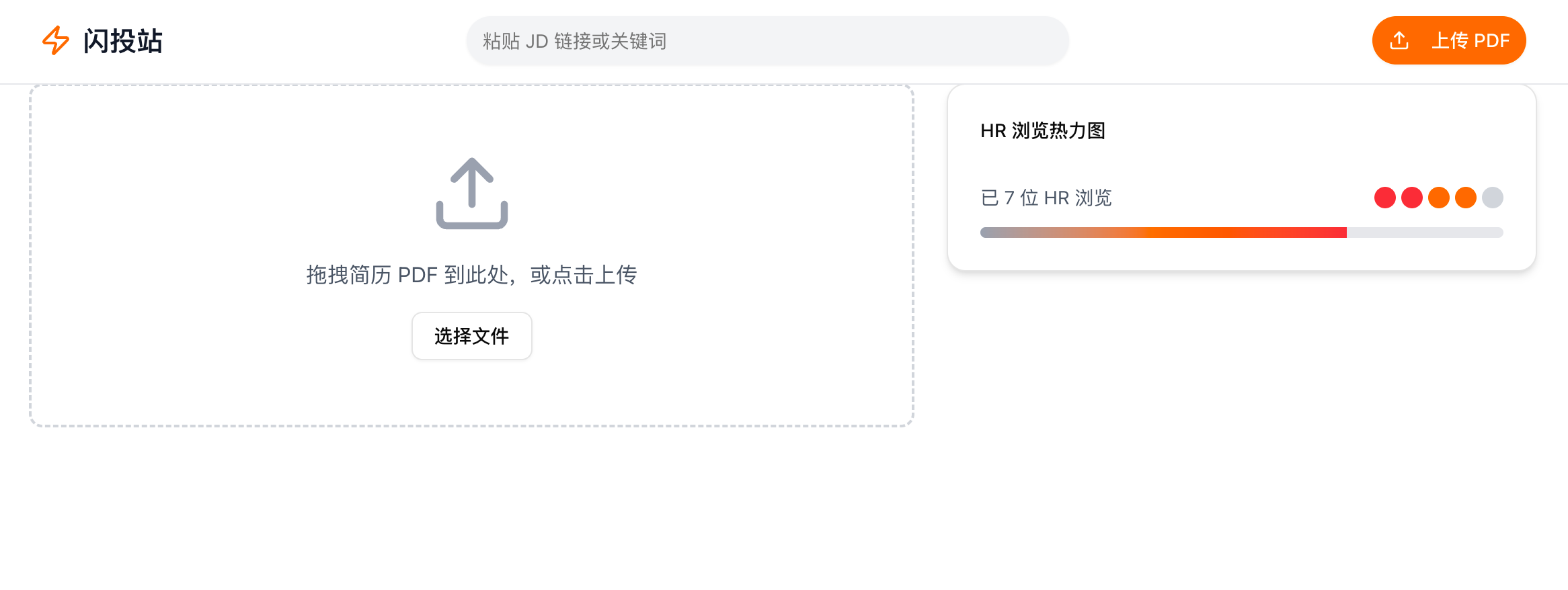 • 空态提示:「拖拽简历 PDF 到此处,或点击上传」