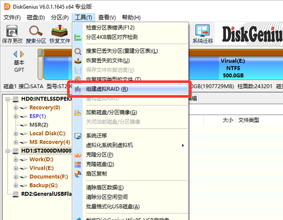 方法一、用 DiskGenius 虚拟重组 RAID