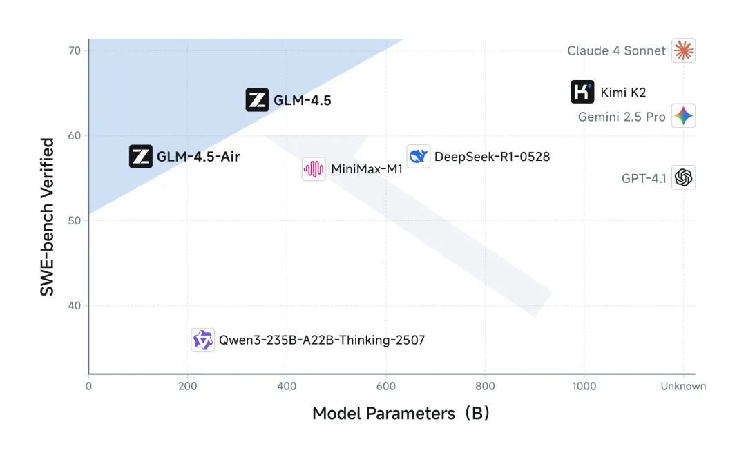 GLM-4.5 在性能优化的同时,实现了低成本和高效率。