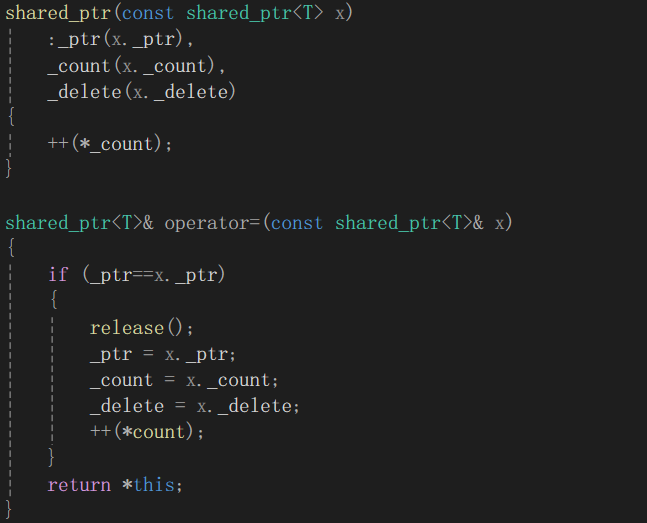 这是shared_ptr的关键,拷贝构造和赋值拷贝。