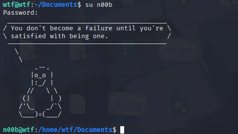 根据上面发现的字符串推测是rot加密,解密一下。登陆用户名weianonymous,密码为空。6.点击About Us会下载一个文件。下载cred.txt和welcome。kaili和靶机都设为NAT模式。1.用kali作为攻击机。9.切换到n00b账户。查看user.txt。