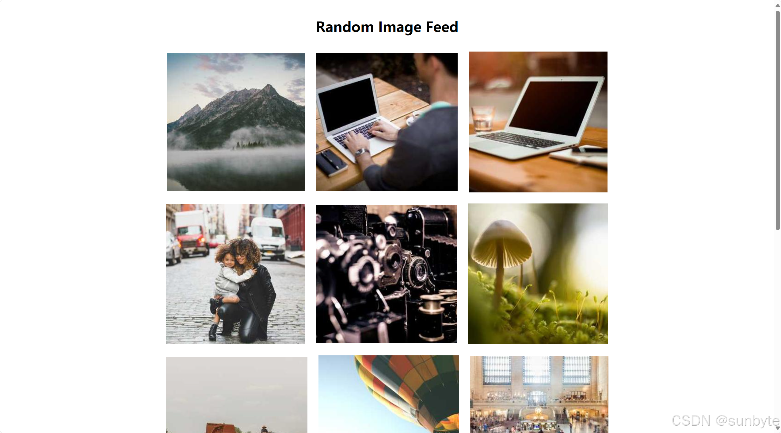 - 每张图片从 Lorem Picsum 服务获取,尺寸随机