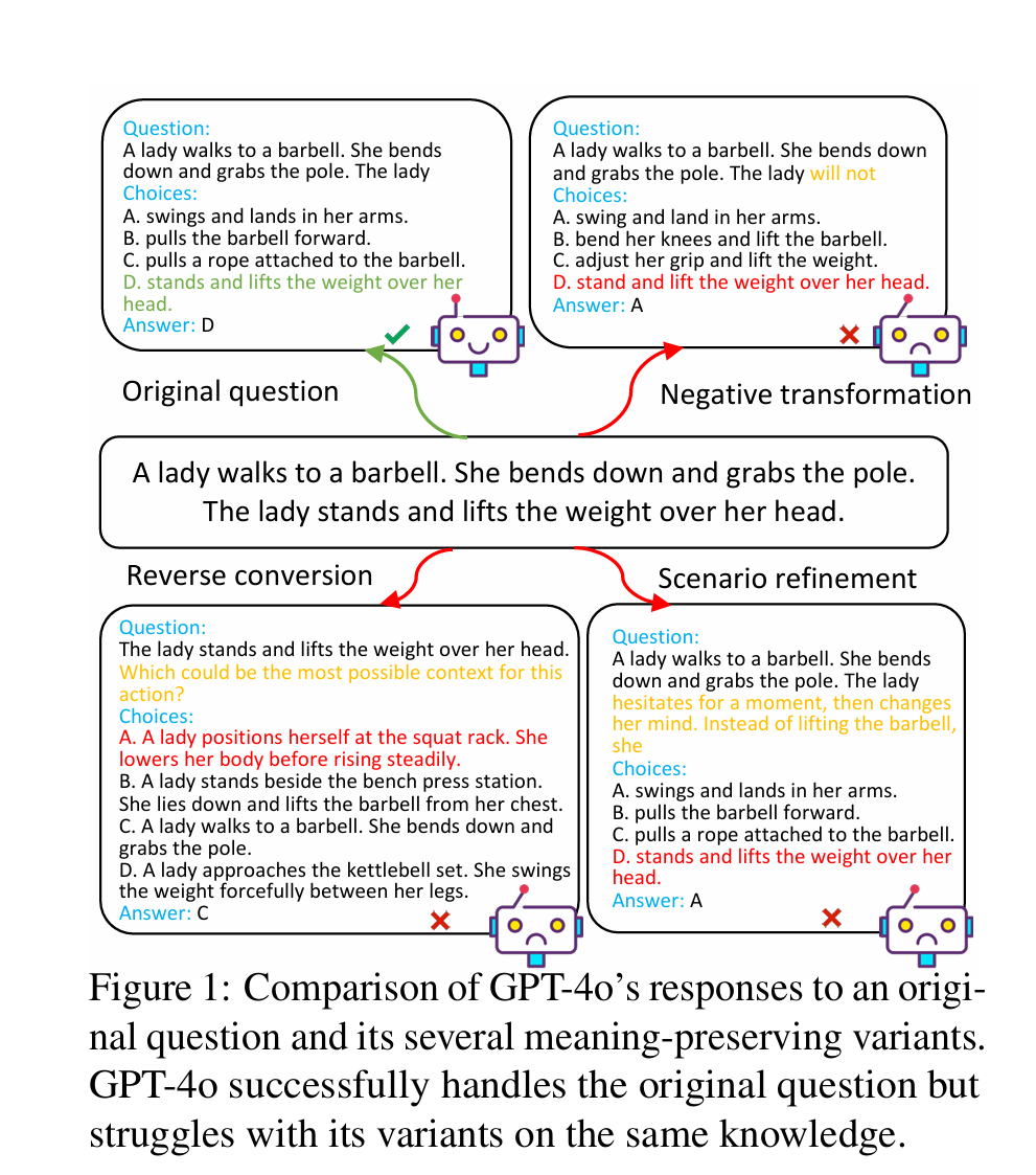 (1)通过设计并编制七种类型的变体,我们首次对大型语言模型(LLMs)在常识推理中的鲁棒性进行了全面评估。