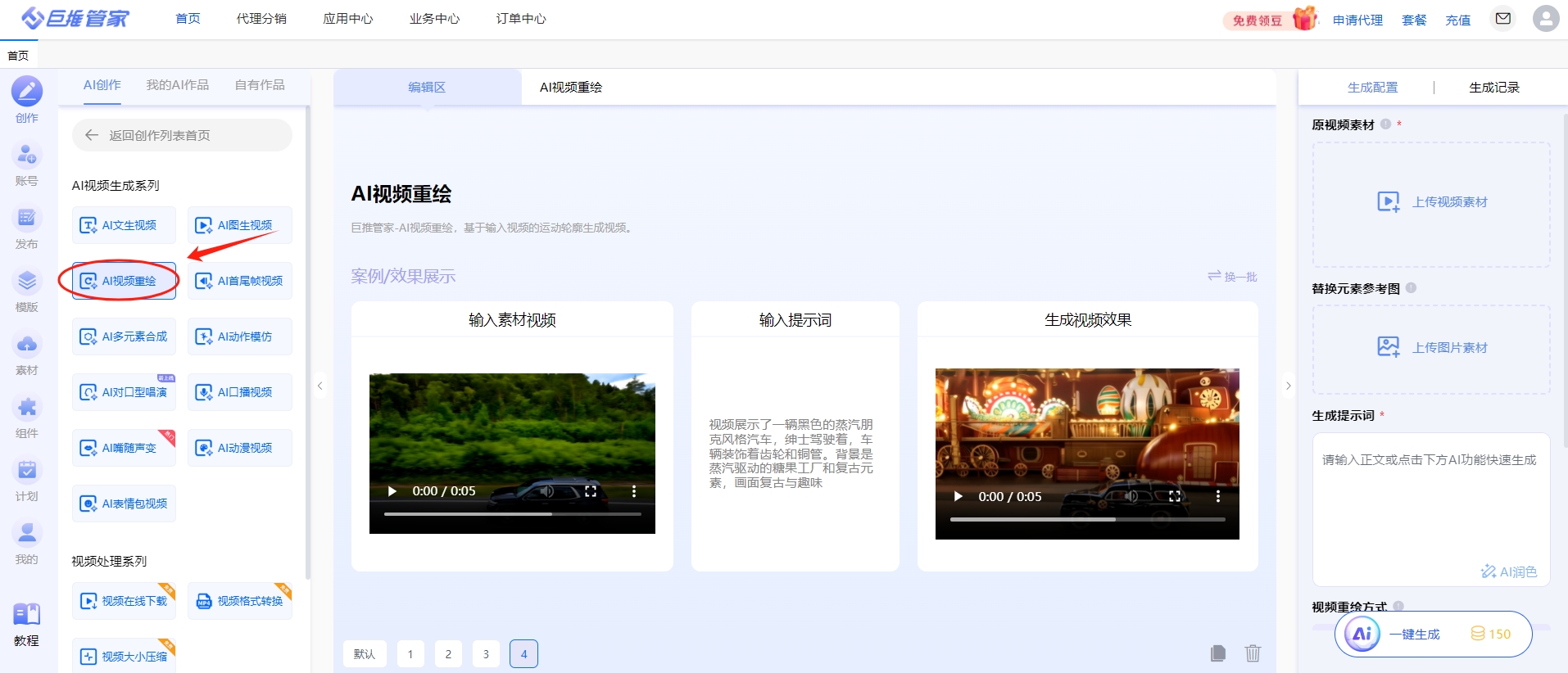 1. 巨推管家AI视频重绘视频生成器