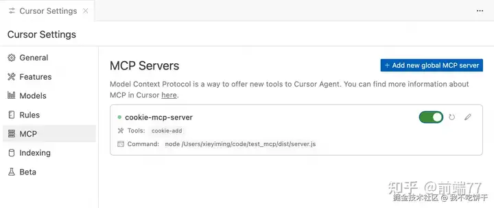 Cursor - 首选项 - Cursor Settings - MCP - "Add new global MCP Server"