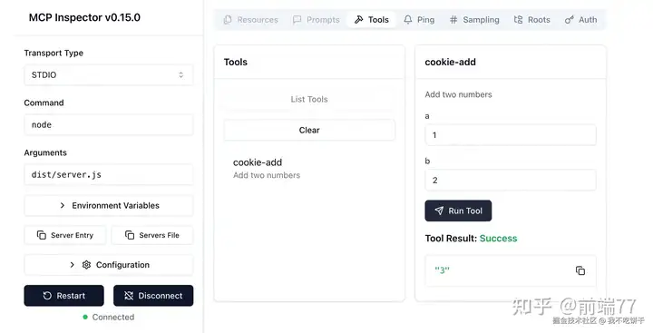 是 Model Context Protocol (MCP) 生态系统中的一个开发工具,主要用于调试、测试和检查 MCP 服务器及其功能。我们可以用它来调试我们刚才实现的 MCP。
