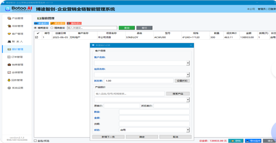 企业营销管理软件:博途智创AI团队自研的专门为企业打造的全链路销售管理工具