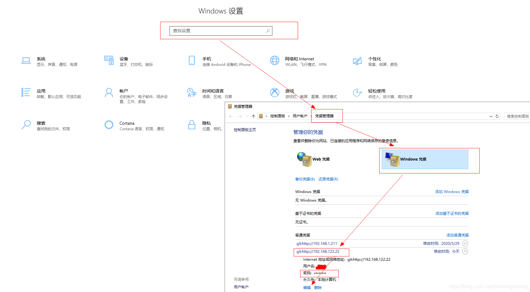 打开凭据管理器 - Windows凭据,找到对应的凭据,删除掉,重新clone即可,如下图所示