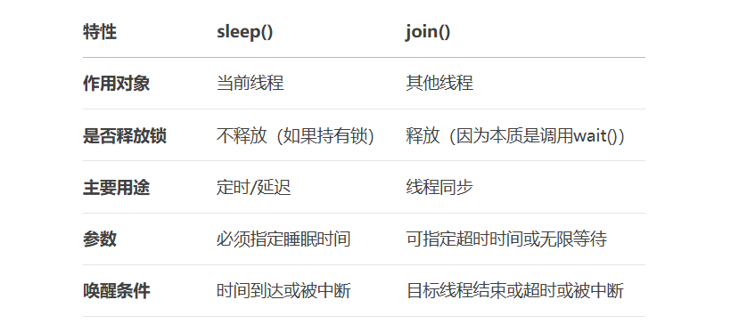 join()执行过程中,会释放当前线程持有的锁;sleep()休眠没有结束前,不会释放锁;