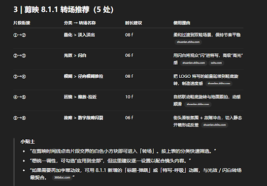 3. 最后,我要用剪映剪辑到一起,给出镜头之间的转场推荐,我用的剪映版本是8.1.1
