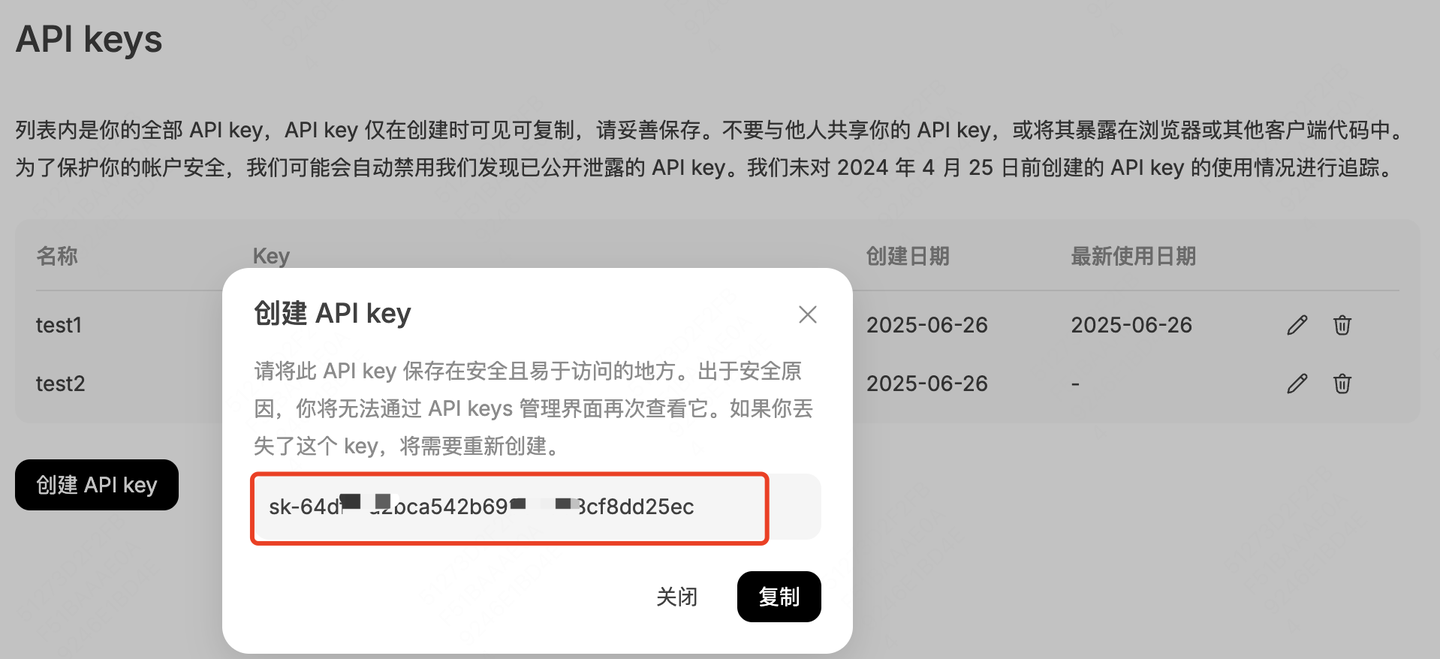 创建API key: