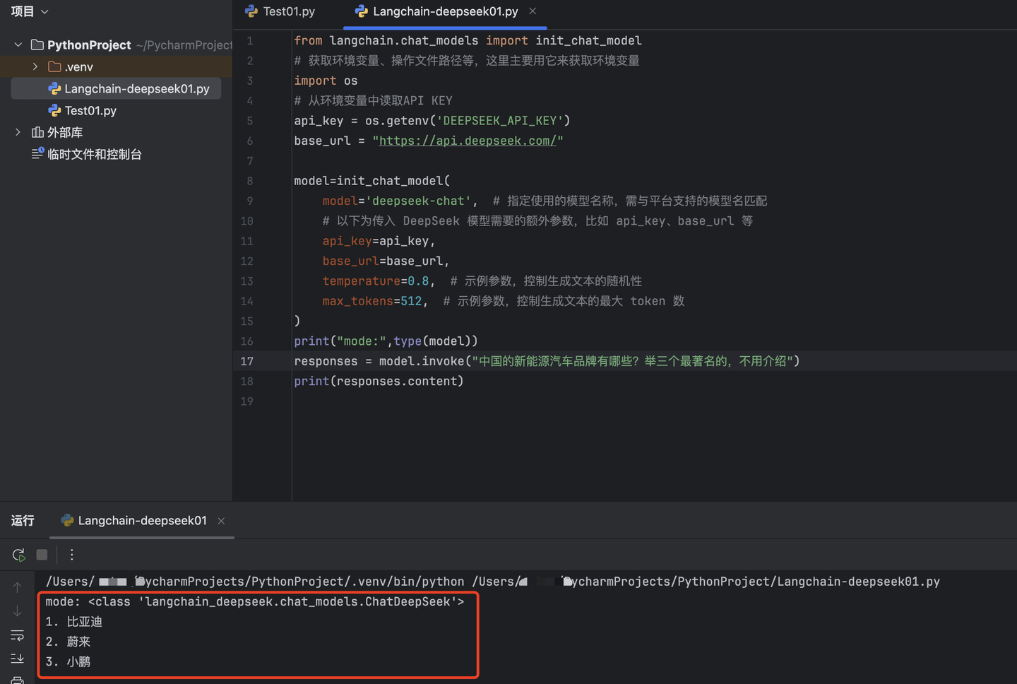 1.调用DeepSeek大模型-【init_chat_model】方式