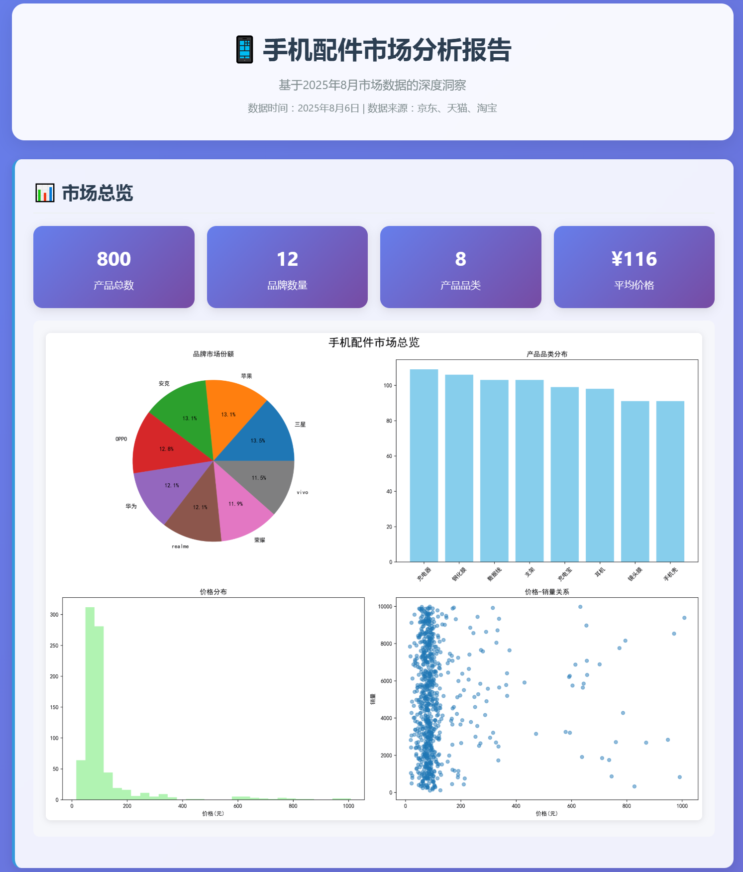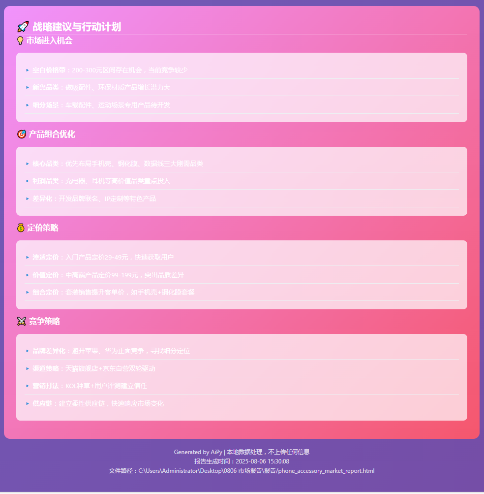 我需要你使用playwright mcp 爬虫,搜索手机配件市场相关产品信息,形成商务风格的HTML市场分析报告,要求如下: