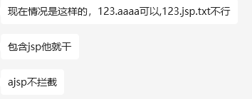 白盒审计的时候需要注意黑名单/白名单逻辑是否严密,黑盒测试的话可以尝试`1.jpg.jsp\.jsp`这种文件名可能可以绕过某些错误的黑白名单判断。