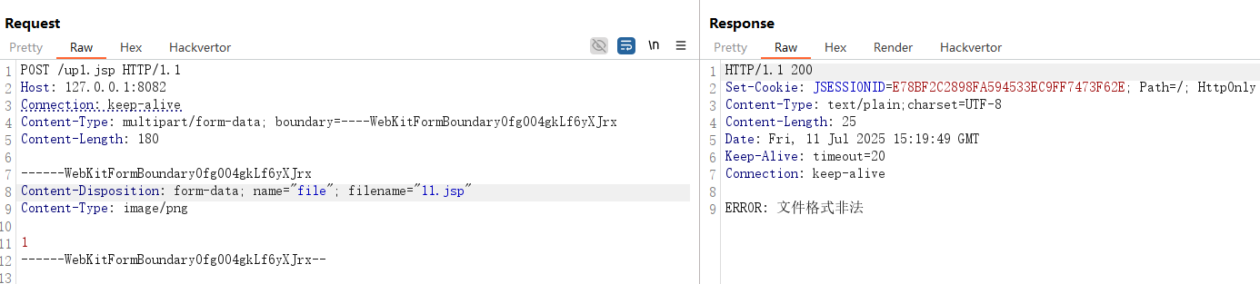 这里直接使用`originalName.indexOf(".jsp") > 0`判断文件名中是否包含`.jsp`我估计有一部分审计人员可能认为是安全的,实际上是不安全的当`originalName=".jsp"`时`originalName.indexOf(".jsp")==0`依然可以上传`jsp`文件。