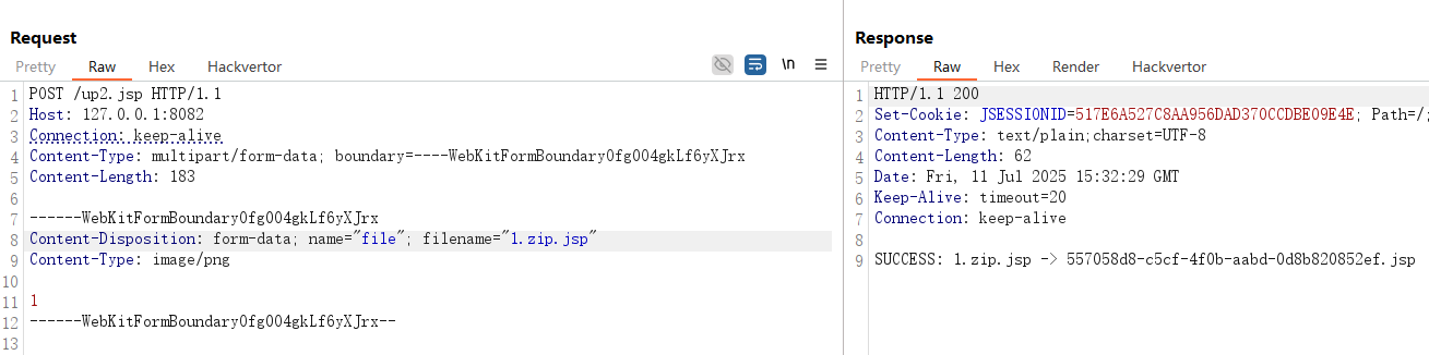 这种写法在审计过程中也不少见,基本做审计的都可以看出来是任意文件上传。`originalName="1.zip.jsp"`即可
