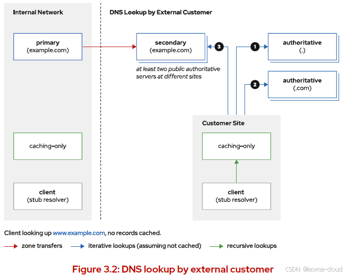 例如,root名称服务器对root zone具有权威性,但它们将.com域的职责委派给其他名称服务器,这些名称服务器为.com区域提供权威性应答。 这些服务器还可以继续将责任委派给其他名称服务器。
