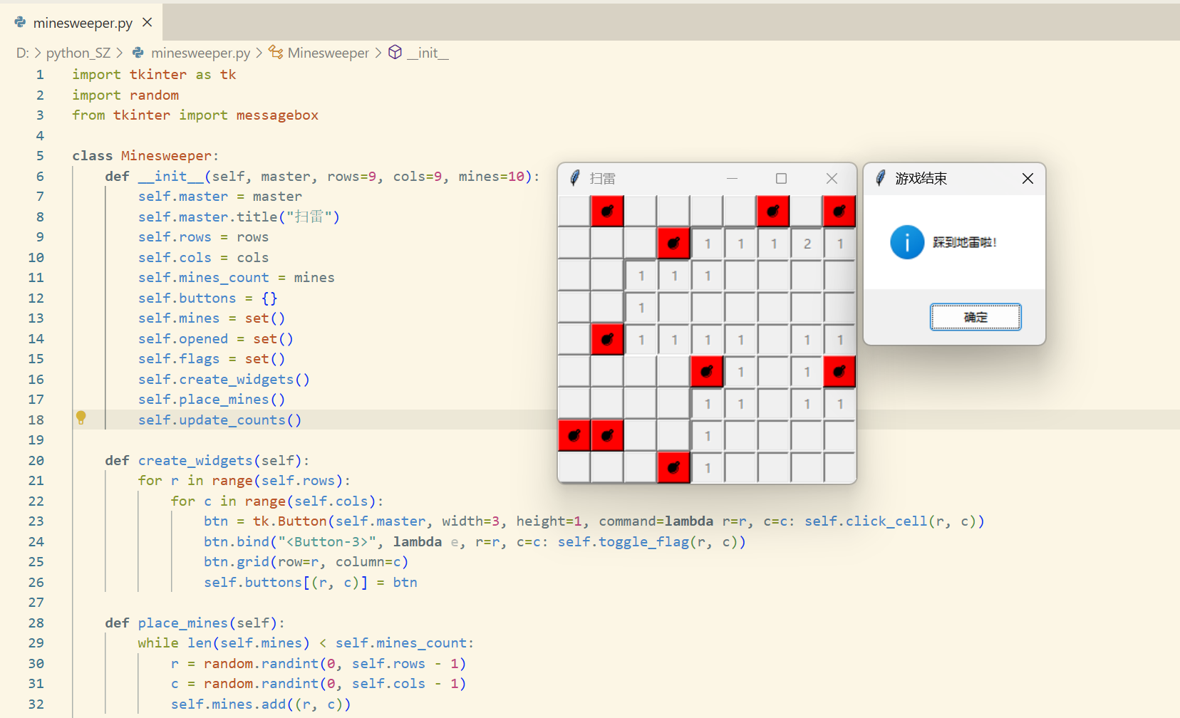 - 包含地雷随机生成、数字计算、胜负判定等核心逻辑