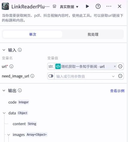选定话题后,工作流会调用 LinkReaderPlugin,自动抓取该新闻的内容。