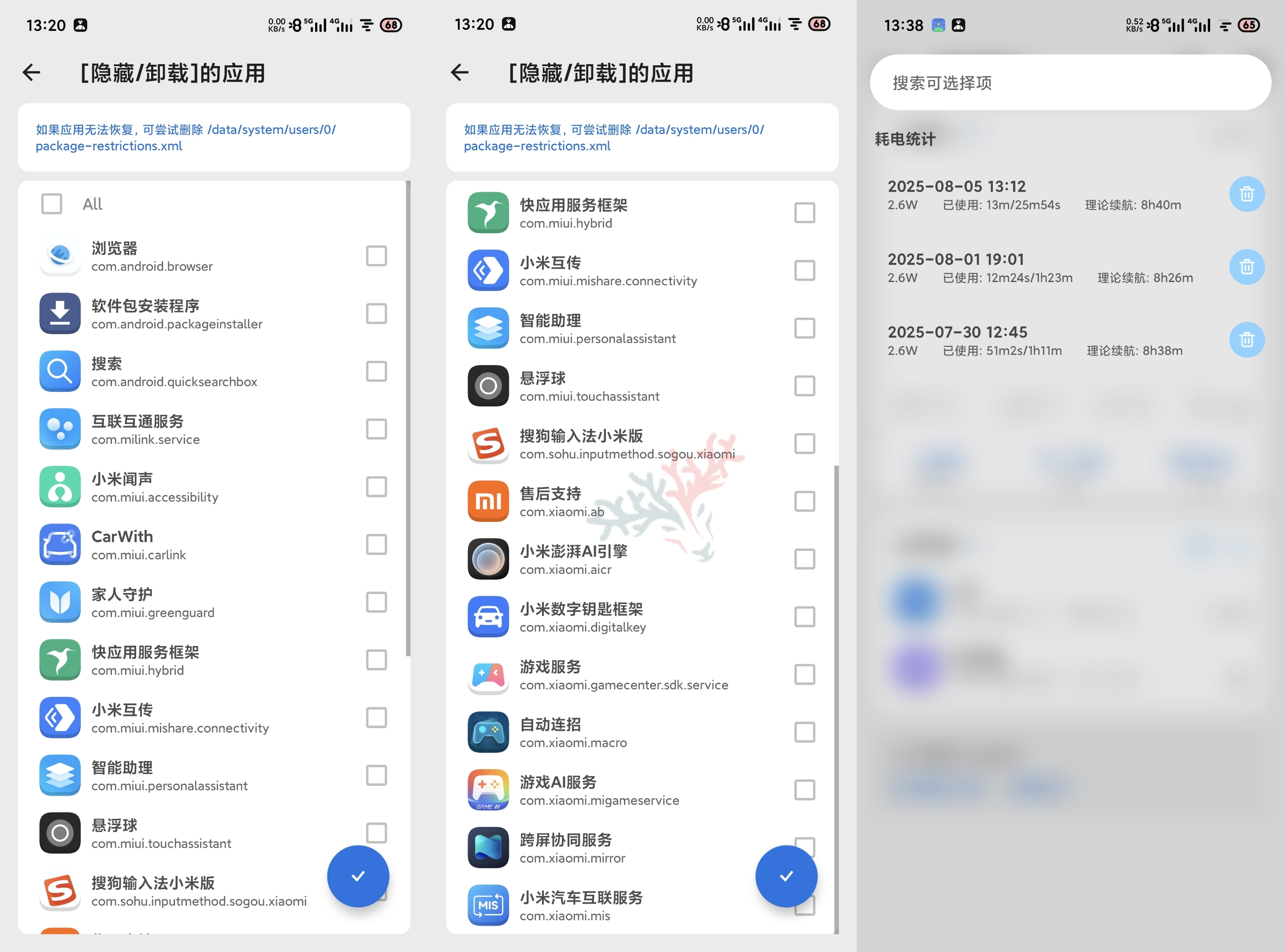 以下是小米能在scene(本文所用工具)里卸载/隐藏的名单,安鹿测试用了快一周了,启动了n次,没卡米,基本稳定2.6w,除了长时间打游戏日常使用不烧(常驻4 5个后台)!