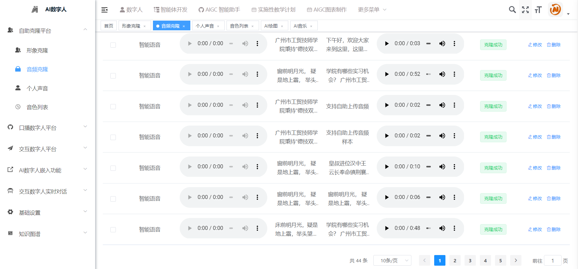 语音合成(TTS):深度学习将任意文本转成高保真语音,支持音色克隆、情感韵律,为数字人开口说话提供声源。