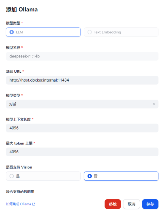 六、找到ollama模型供应商,添加模型,并进行配置