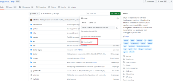 接下来,我们需要获取Dify的源代码。有两种方法: