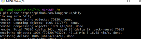 (2)输入命令:git clone https://github.com/langgenius/dify