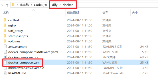 - 先找到docker-compose.yaml文件所在的文件夹(通常在 dify 目录下的 docker 文件夹中)