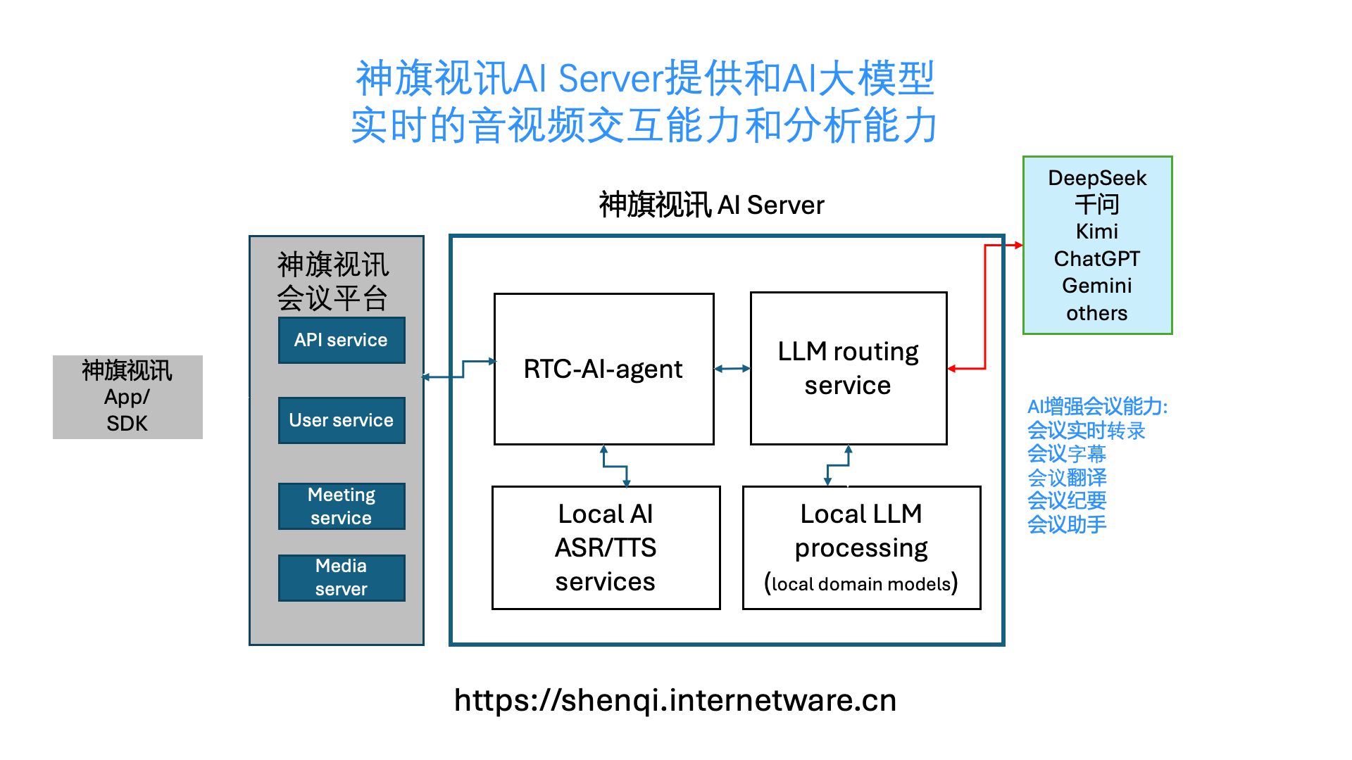 神旗视讯AI Server: 支持AI转写, AI会议纪要(DeepSeek,千问,Kimi)和企业邮件协作等功能