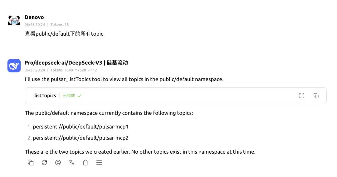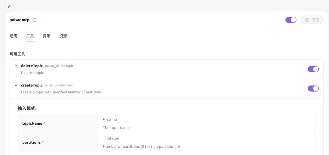 同样地,我们也可以为 PulsarTopicTools(管理 Topic)和 PulsarProduceTools(发送消息)定义类似的工具。