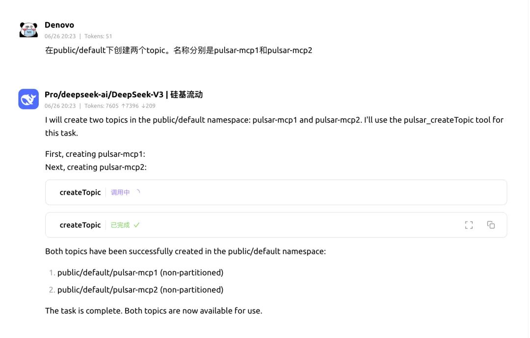 2. 强大的多租户能力:Pulsar 原生支持多租户,可以从逻辑上完美隔离不同业务线或团队的资源。这使得我们用 AI 创建和管理租户(createTenant)的操作变得极具现实意义。
