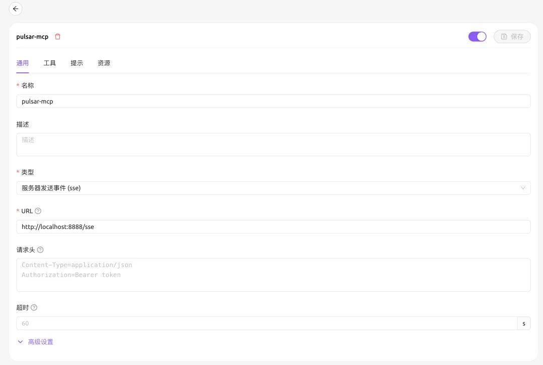 服务启动后,你就可以通过兼容 MCP 协议的客户端(如 Cherry-Studio,Cline 等)连接到 http://localhost:8888,开始用自然语言操控你的 Pulsar 集群了!