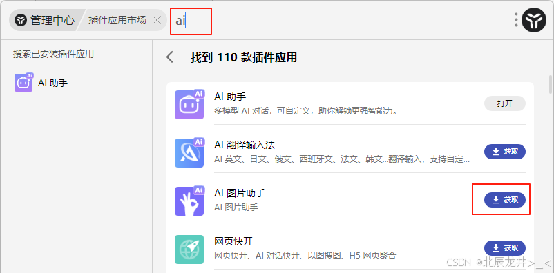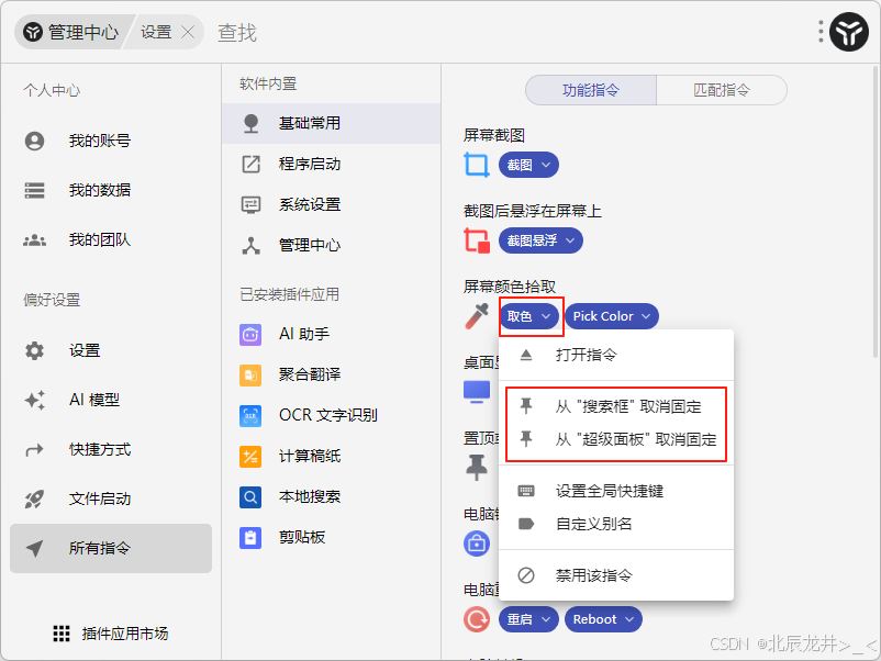 很多朋友找回“取色”时,会去插件市场搜索,但是正确的方法是在这里面