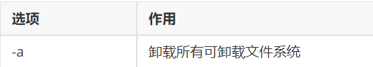 umount -a [-nrv] [-t vfstype] umount 挂资源或者挂载点