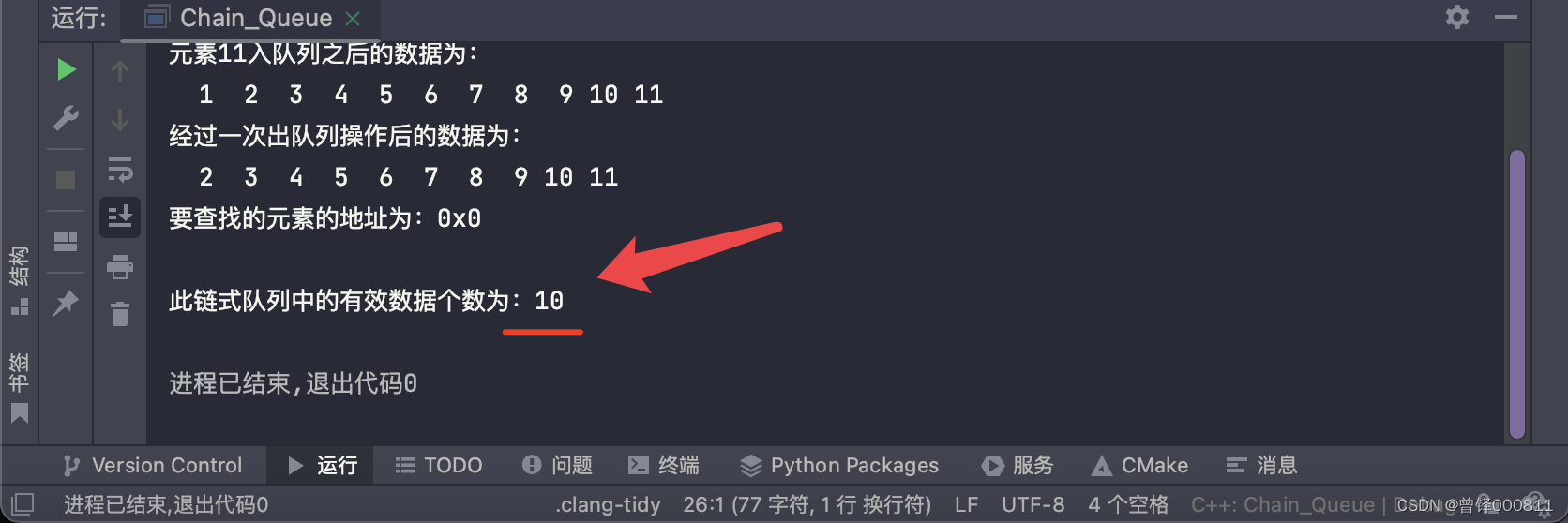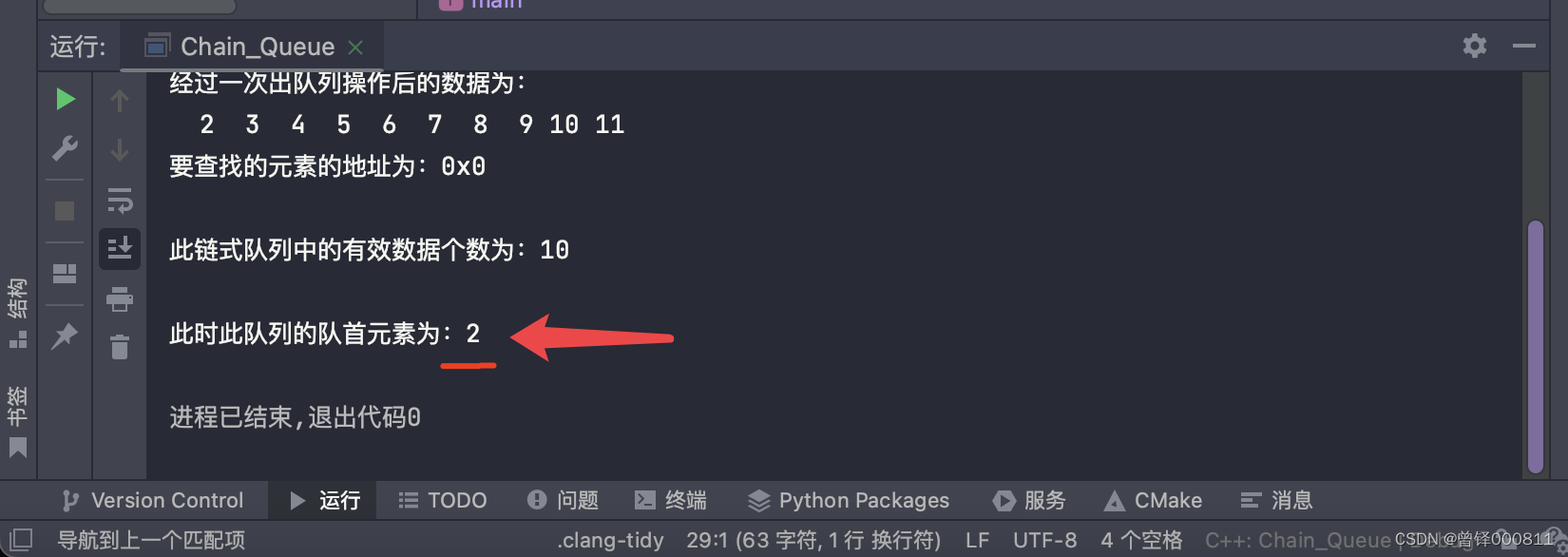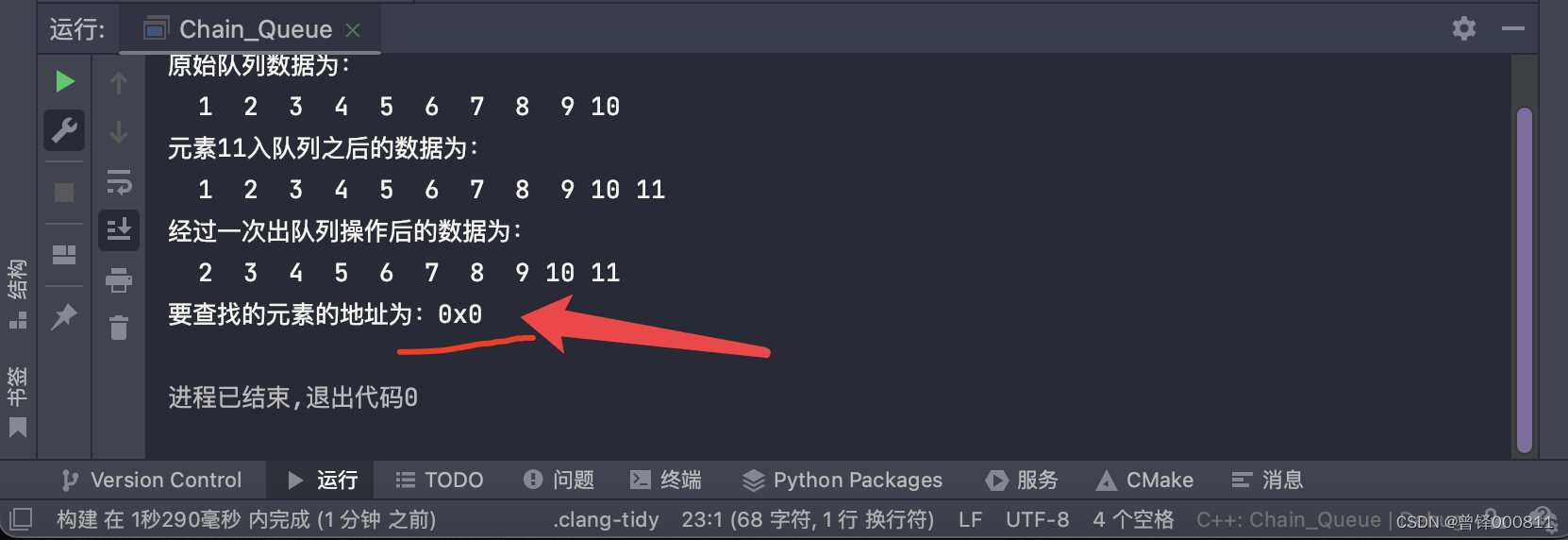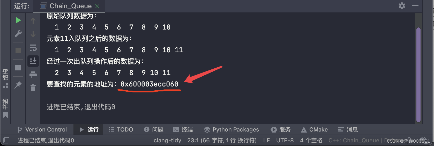 如图,成功地将队列中元素4的地址返回了出来。
