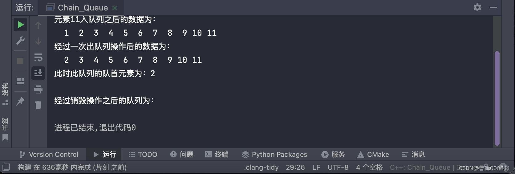如图,成功将链式队列销毁了(没有数据) 。