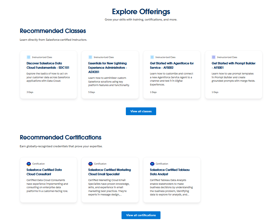 无论你是初学者还是资深专家,Trailhead Academy都能助力你的职业发展。赶紧登录体验,规划好认证路径,轻松通过考试,开启更多职业机会!