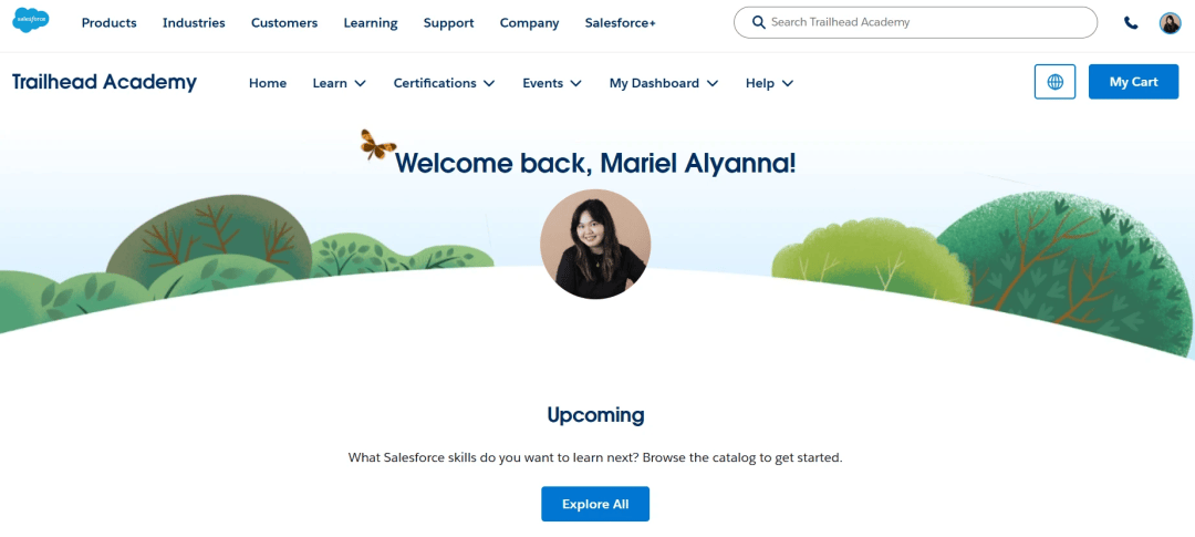登录Trailhead Academy后,进入“我的仪表盘”即可查看: