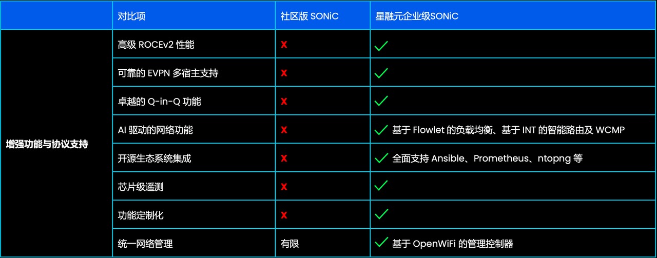 作为国内第一批SONiC社区成员,星融元围绕开放网络技术进行了长期、持续的投入,并结合各种典型应用场景做了足够的测试验证和缺陷修复,所提供的SONiC企业级发行版AsterNOS目前已可稳定兼容几乎所有主流商业交换芯片,构建的一系列有特色的硬件平台,能够实现从数据中心到云化园区的跨场景使用。