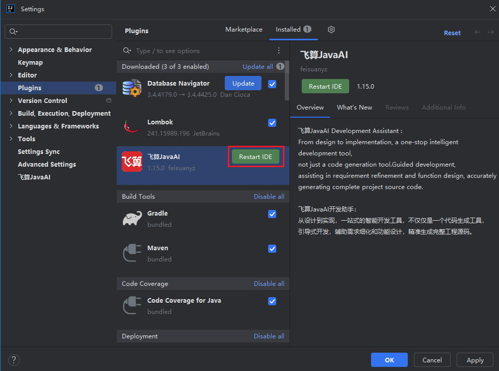 6、右侧会看到飞算的logo图标即安装成功。如果不显示logo图标,请按照第8步的操作进行。