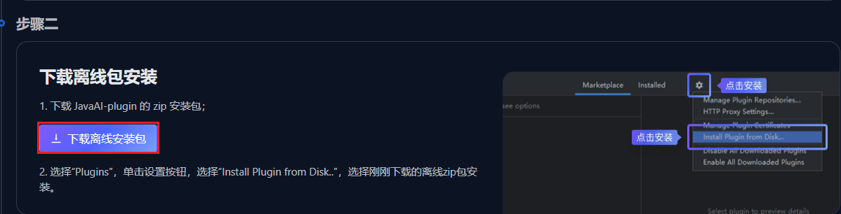 1、使用浏览器打开官网地址 https://www.feisuanyz.com, 然后单击“获取JavaAI”,然后拉到方法二,然后单击“下载离线安装包”。